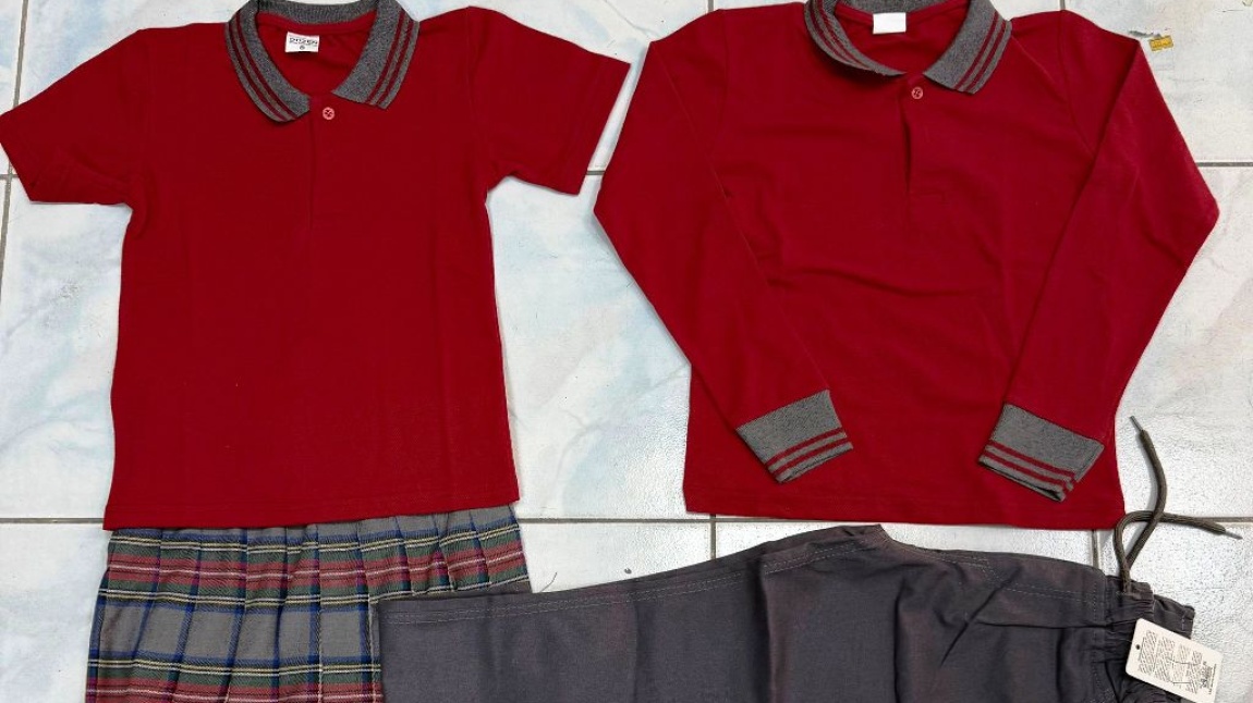 1. Öğrenciler paylaşılan fotoğraflarda görülen kıyafetlerden sadece kırmızı renk tişört (polo, kısa kol - uzun kol) kırmızı renkte sweatshirt ( kış için kapüşonlu veya kapüşonsuz ) ve gri renk pantolon giyebileceklerdir.